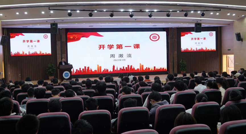 3月9日下午,学校党委书记周激流教授在国际会议厅作“开学第一课”主题报告,2022级电信科学、人工智能、数字媒体等专业的200多名学生现场听课。