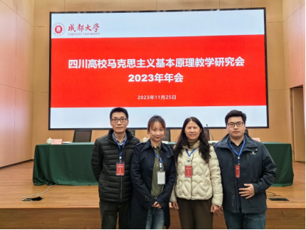 四川省高校马克思主义基本原理教学研究会2023年年会于11月25日在成都大学召开,来自省内高校的300多位教师代表参加,我院副院长孙莎岚、“马原”教研室主任付立杰、以及课程组的侯莲梅副教授、杨万兴老师一行4人参加此次会议。