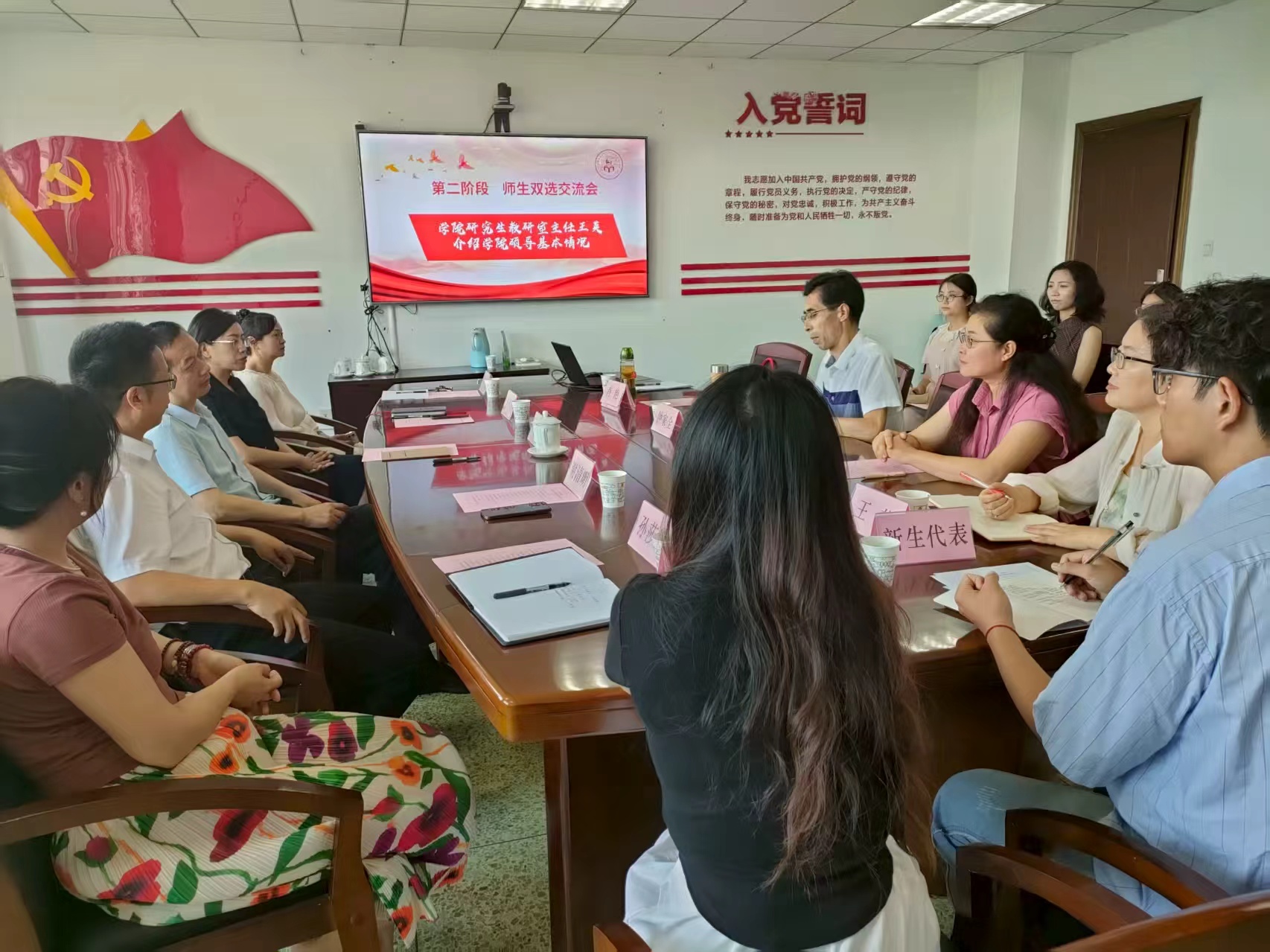 师生交流环节聚焦“让导师找到适配学生、让学生选对研究方向”的核心目标。学院全体硕士生导师依次详细介绍个人主要研究方向、近年科研成果、在研项目进展等,为新生提供“立体式”导师画像;2025级新生亦逐一结合本科专业背景、学术兴趣点、未来研究设想展开分享,既展现个人优势,也坦诚表达发展诉求,助力导师更精准地把握新生的学术基础与成长潜力,为后续师生协作科研、个性化培养筑牢基础。