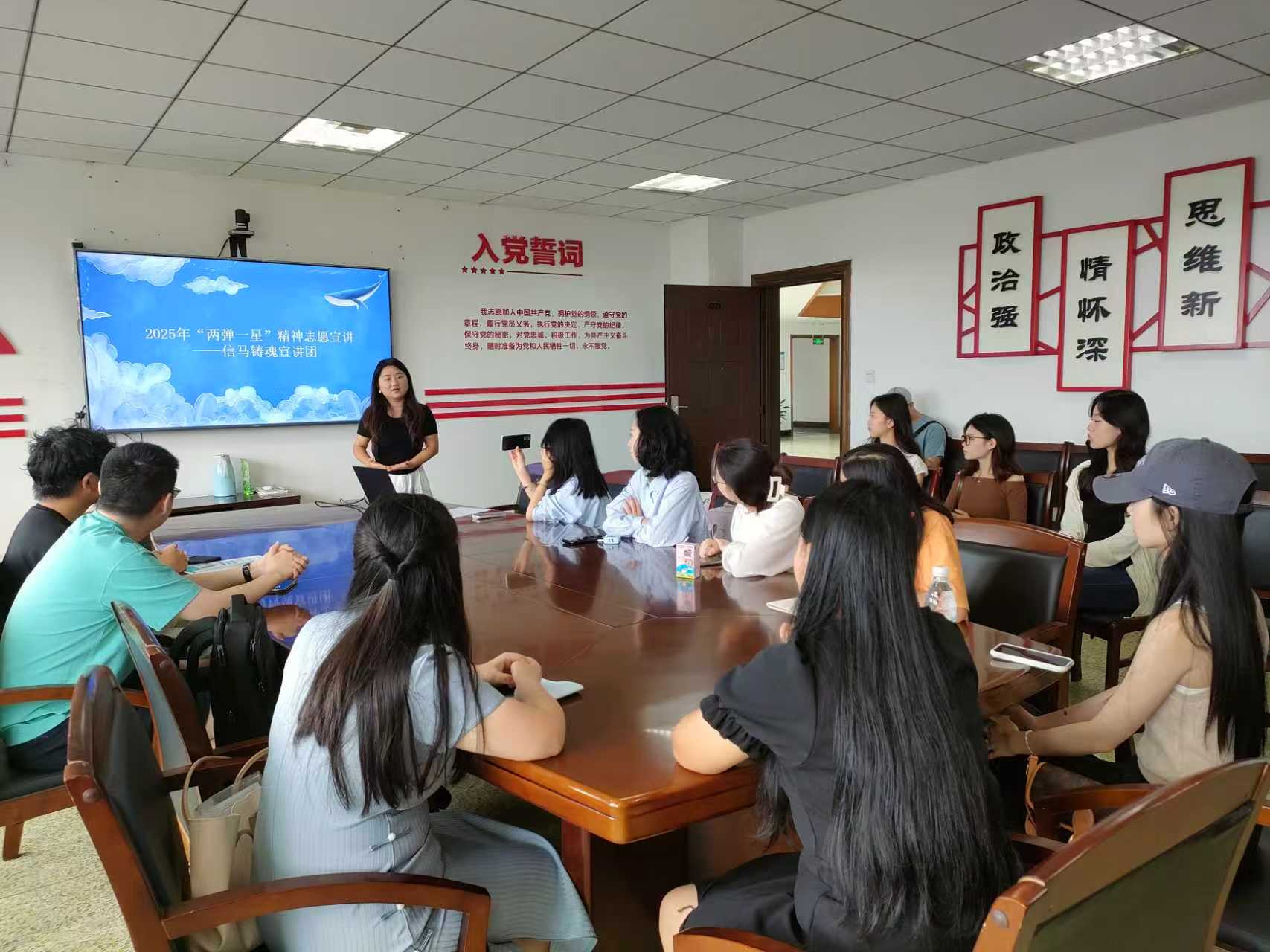 学院“信马铸魂”理论宣讲团已于今年6月成功入选为2025年全国大学生“两弹一星”精神志愿宣讲团。为扎实有序推进宣讲工作,9月12日“信马铸魂”理论宣讲团组织召开了“两弹一星”精神宣讲工作专题部署会议,会议由宣讲团指导教师肖艳老师主持,全体成员与会,本次会议旨在进一步深化项目建设、拟定宣讲计划、优化宣讲流程,为接下来面向校内外开展高质量宣讲做足准备。