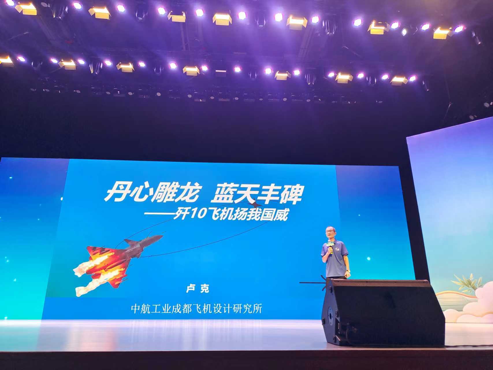 在首场主题宣讲中,中国航空工业集团成都飞机设计研究所研究员、原歼-10B飞机试飞副总师卢克与高级工程师但聃作了题为《丹心雕龙 蓝天丰碑—歼10飞机扬我国威》的精彩宣讲。他们结合自身科研经历,深情讲述了歼10系列飞机从研制到首飞的艰辛历程与辉煌成就,展现了我国航空工业自主创新的伟大突破,激励青年坚定科技报国信念、勇担时代使命。随后进行的互动环节气氛热烈,现场青年学子踊跃提问,与嘉宾围绕航空技术发展、青年人才培养等话题进行了深入交流。
