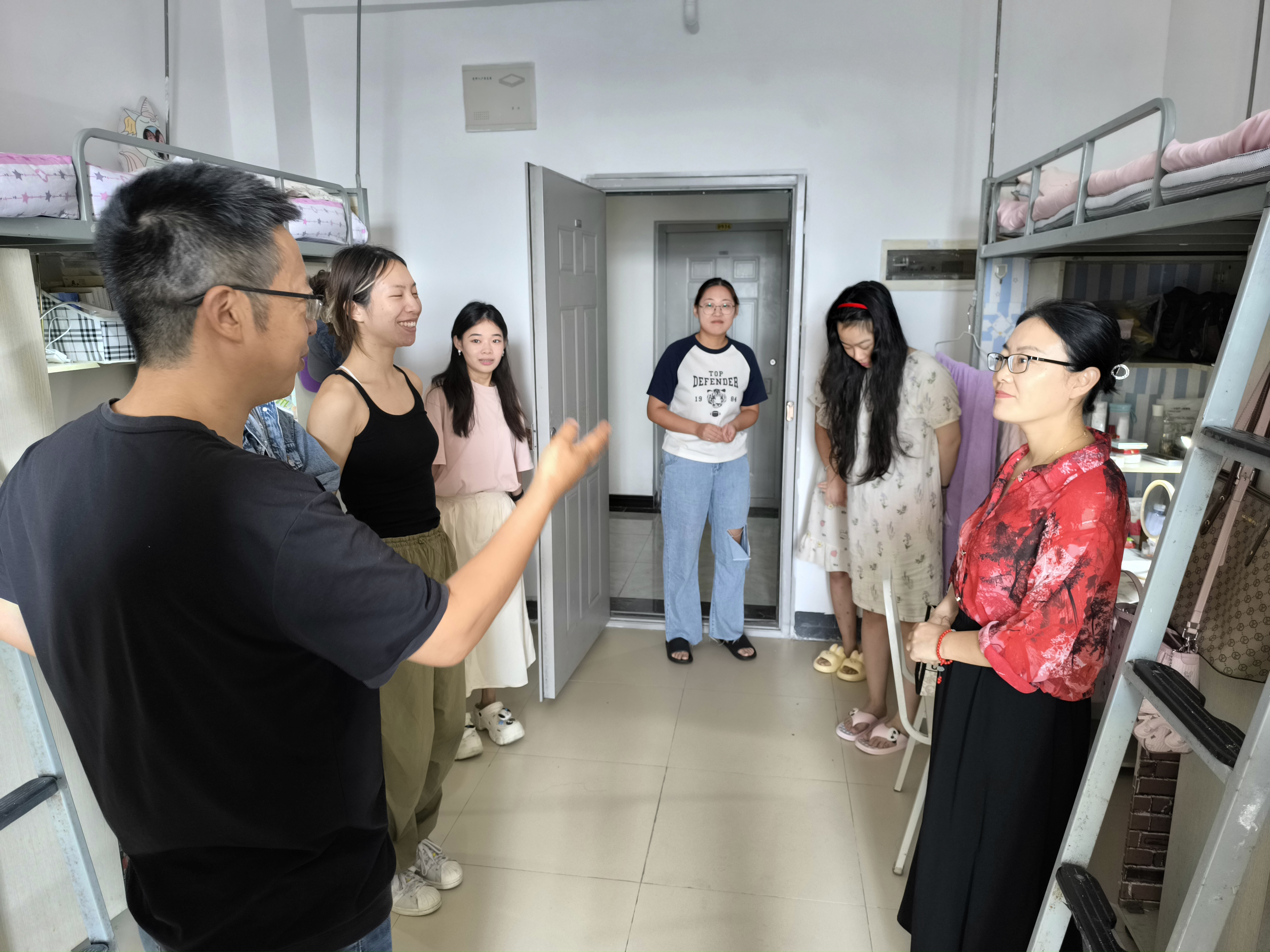 9月1日下午,williamhill中国党委书记谢清明带队走访新生寝室,研究生教研室主任王英,研究生辅导员郝亮陪同走访。
