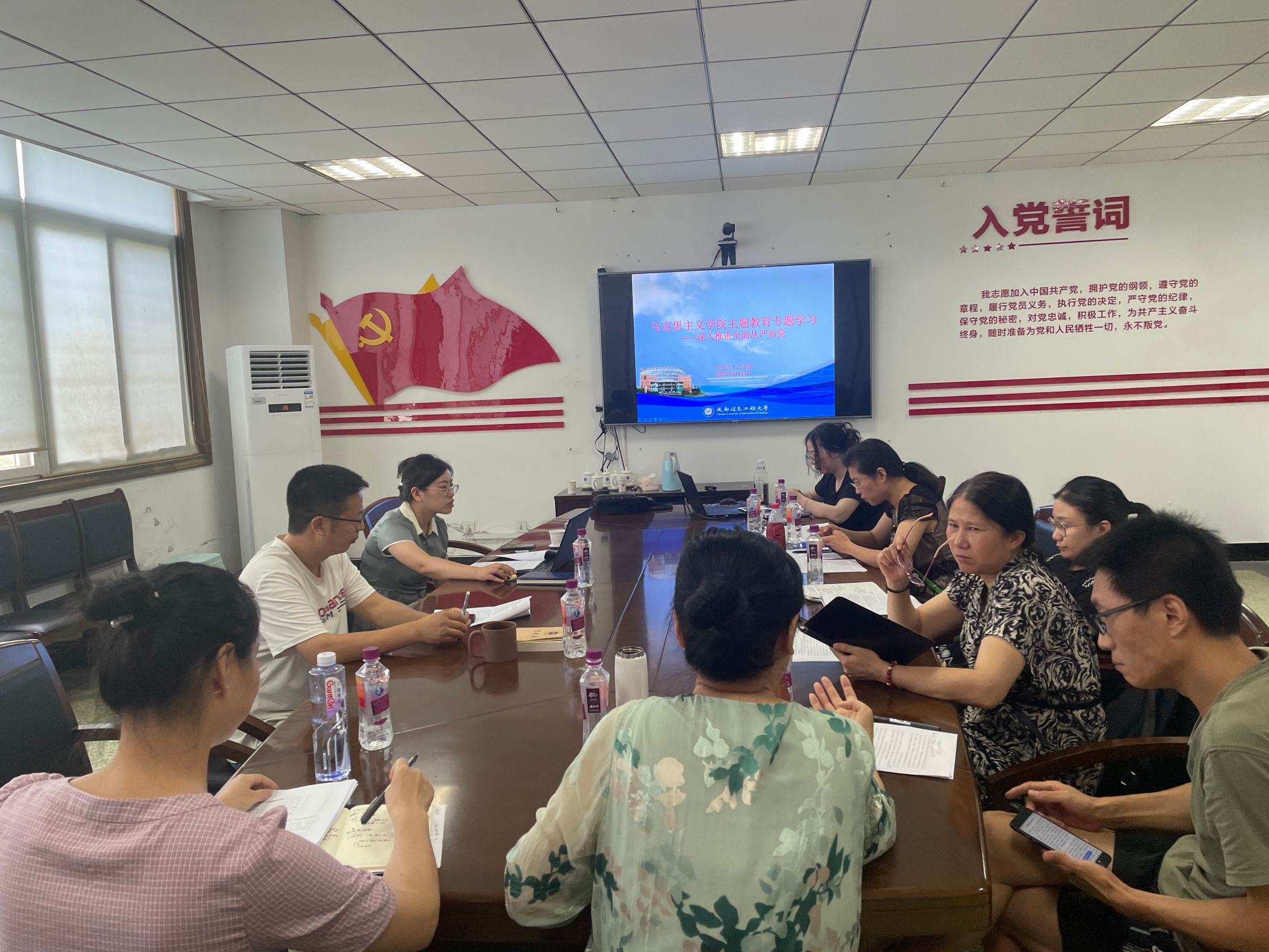 8月11日上午,williamhill中国党委在学院会议室开展“深入推进全面从严治党”主题教育专题学习,学院领导、各党支部书记、教研室主任参加学习,党委书记谢清明主持学习会。