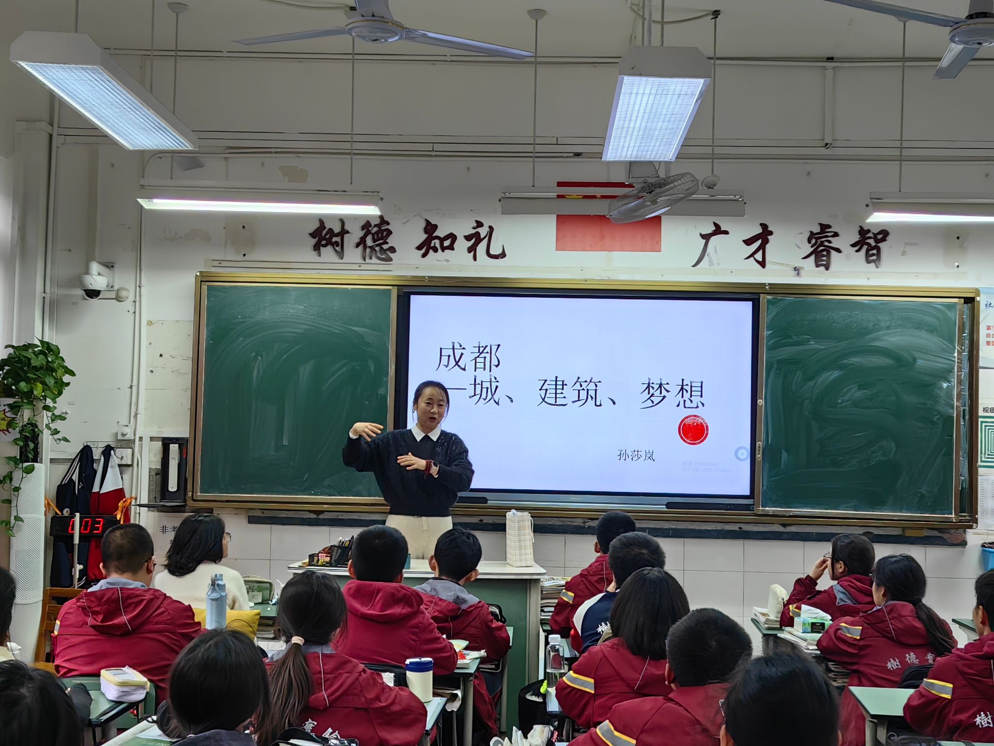 2025年12月12日,williamhill中国副院长孙莎岚走进成都树德实验中学(西区),为九年级三班的同学们带来一堂别开生面的思政公开课。课堂以“成都:城、建筑、梦想”为主线,串联起城市记忆、家国情怀与青春梦想,思政教育在“沉浸式”体验中悄然发生。
