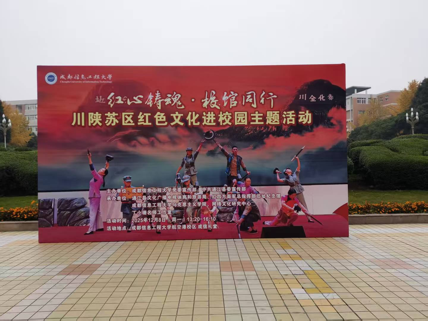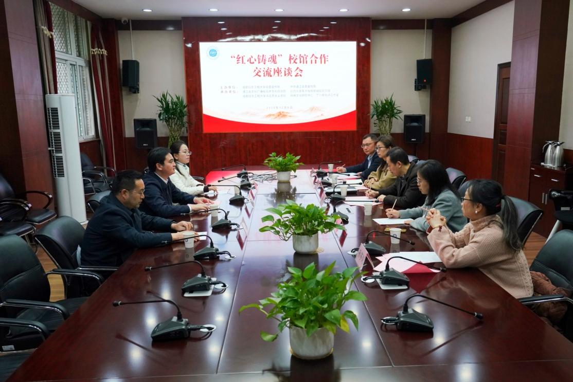 本次活动设有“红心铸魂”校馆合作交流座谈会、“成信礼堂”室内活动、参观《川陕苏区红色文化历史展》三大环节。