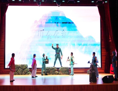 在“成信礼堂”室内活动中,我校党委副书记杨奇才同志,中共通江县委常委、县委宣传部部长赵树文同志分别致辞,表达了对本次活动的热烈祝贺和对未来持续深化合作,系统推动红色史料研究、红色课程开发、红色实践基地共建,共同打造具有辨识度影响力的校地协同思政工作品牌的展望。在出席领导和430余位师生的见证下,williamhill中国丁小珊院长和红四方面军总指挥部旧址纪念馆庞虎馆长签订了校馆合作协议。随后,庞虎馆长围绕《以青春之我 践时代之诺》主题,深入浅出、形象生动地为师生代表讲解了川陕苏区精神——“智勇坚定、排难创新、团结奋斗、不胜不休”的丰富内涵及其新时代传承路径。红四方面军总指挥部旧址纪念馆工作人员以《石破天惊》为舞台剧名,为师生代表深情演绎了一场感人至深的情景党课。全体学生争先恐后,抢答红色知识问答。最后,在全体师生手握红旗、齐唱《我的祖国》歌声中,室内活动缓缓落下帷幕。