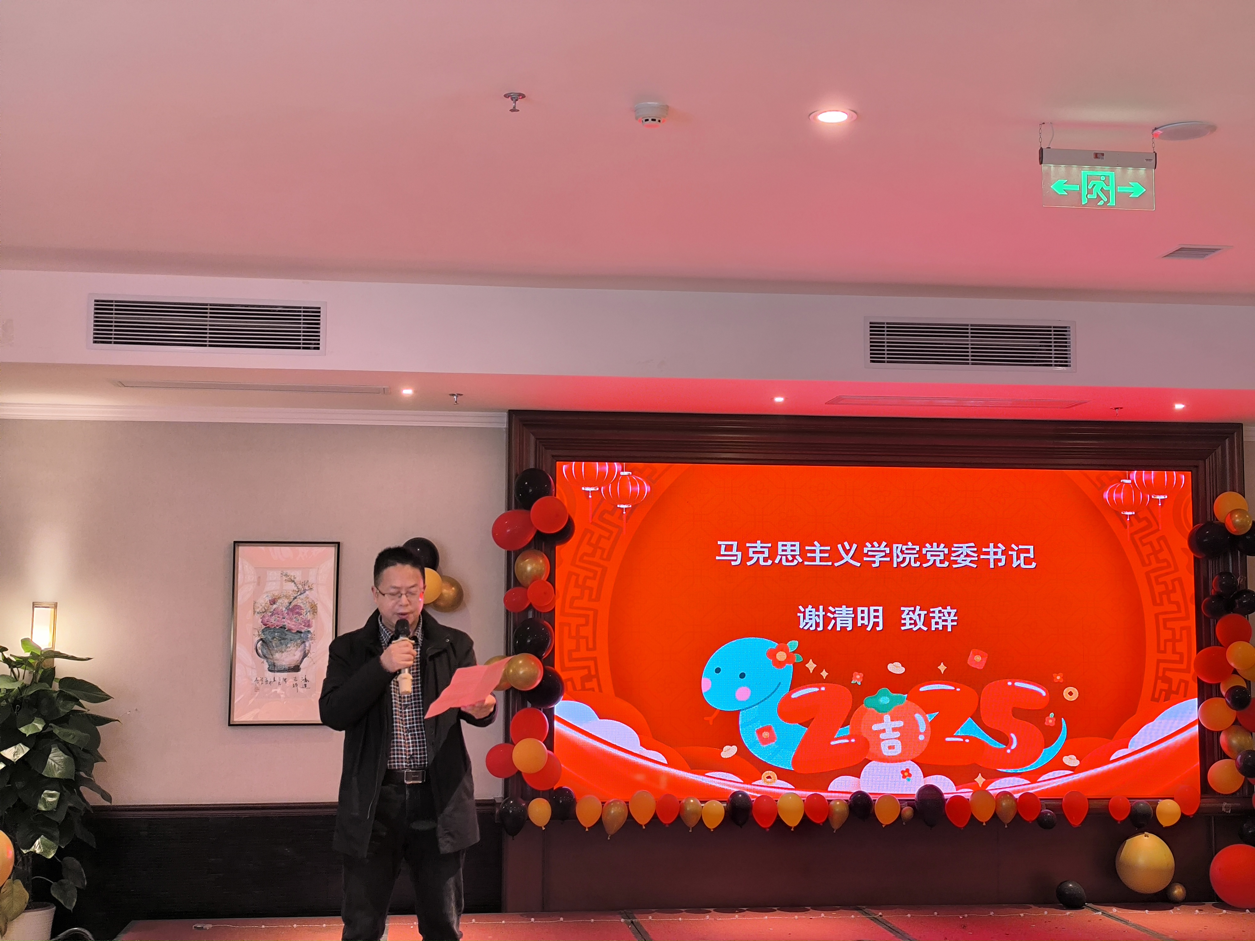 学院党委书记谢清明在致辞中表示,过去的一年,是充满挑战与收获的一年。在全院师生的共同努力下,williamhill中国在教育教学、威廉希尔、社会服务等方面取得了显著成绩,不仅圆满完成了各项既定任务,还在党的建设、学科建设、师资队伍建设、学生培养等方面取得了新的突破。他强调,这些成绩的取得,离不开每一位教师的辛勤耕耘和每一位同学的勤奋学习。新的一年,学院将继续坚持以习近平新时代中国特色社会主义思想为指导,深入贯彻落实党的教育方针,不断深化改革,推动学院各项工作再上新台阶。他鼓励全院师生要继续保持昂扬向上的精神状态,不忘初心,牢记使命,为实现学院的长远发展目标而努力奋斗。