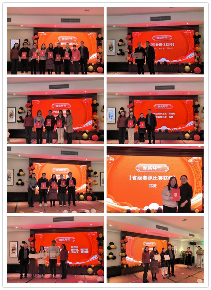 在颁奖环节,学院表彰了2024年在省、校、院获得各种荣誉的师生,其中包括优秀党支部、学院科研之星、教学之星,年度优秀教师,学院教学质量奖,师德师风先进个人、学生学术创新先进个人、优秀学生干部、宣讲比赛获奖者、社会实践先进个人奖等,激励全体师生向先进学习,为学院发展贡献更多力量。在联欢会的进程之中,随着各项精彩节目的轮番上演,气氛逐渐热烈,抽奖环节的引入,将整个联欢会的氛围推向了高潮。